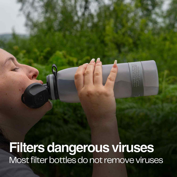 - FILTER VIRUSES. Most water filter bottles provide no protection from viruses! Water-to-Go filters dangerous viruses as well as bacteria, parasites, chemicals, pesticides, heavy metals, microplastics.
